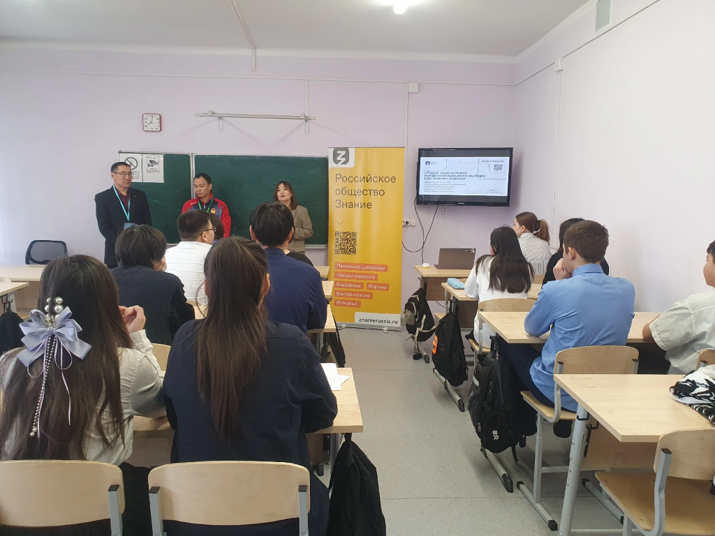 В школе 4 г.Кызыла прошла мотивирующая лекция в рамках трека «Знание.Карьера». С учащимися 8 класса встретились известные в регионе спортсмены – директор универсального спортивного комплекса «Субедей» и тренер-преподаватель по дзюдо
